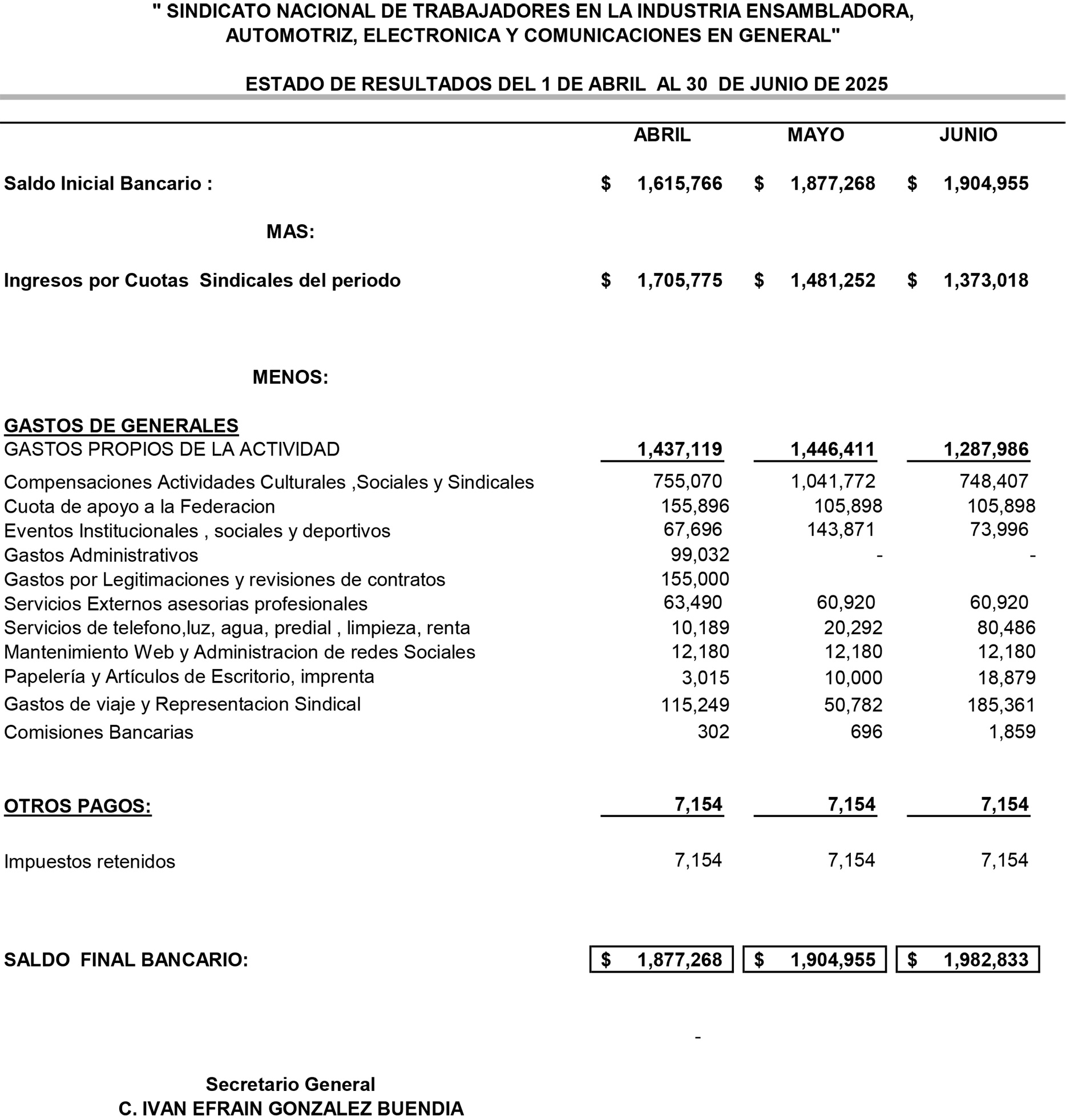 INFORMES DE TESORERÍA 2025